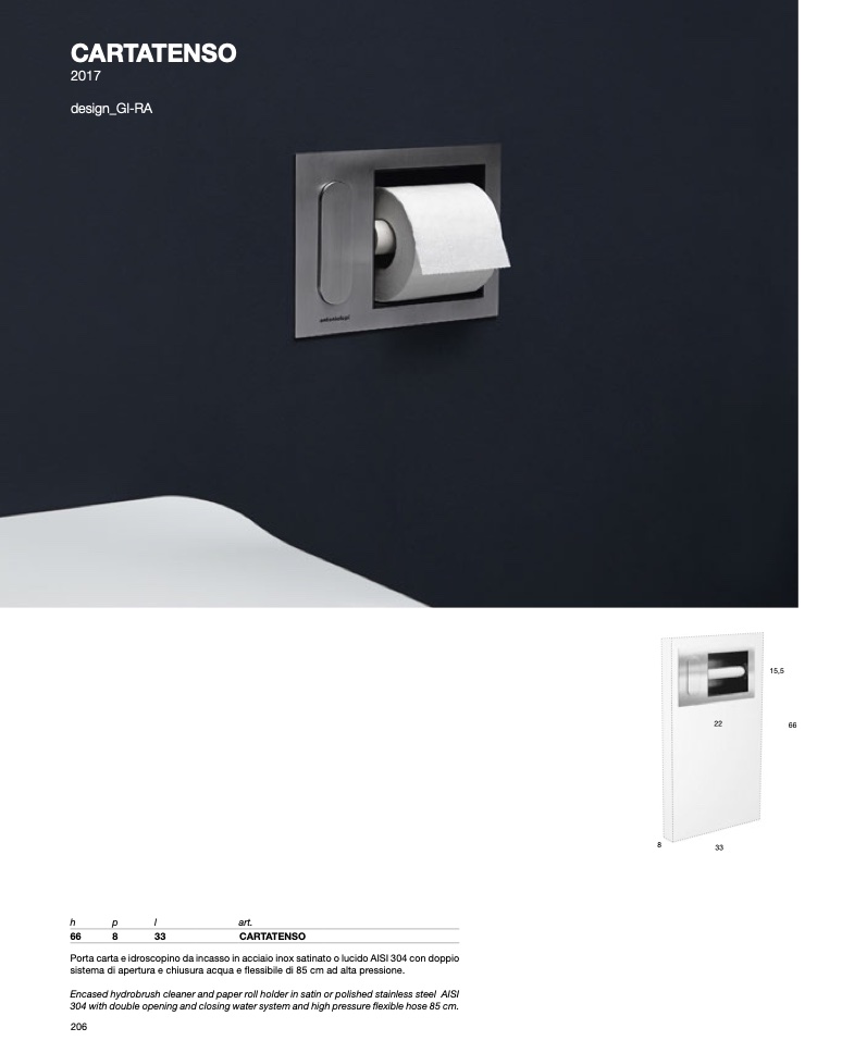 Porta carta e idroscopino da incasso in acciaio inox satinato o lucido AISI 304 con doppio