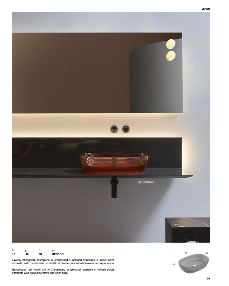 Rectangular top mount sink in Cristalmood or Icemood, available in various colors