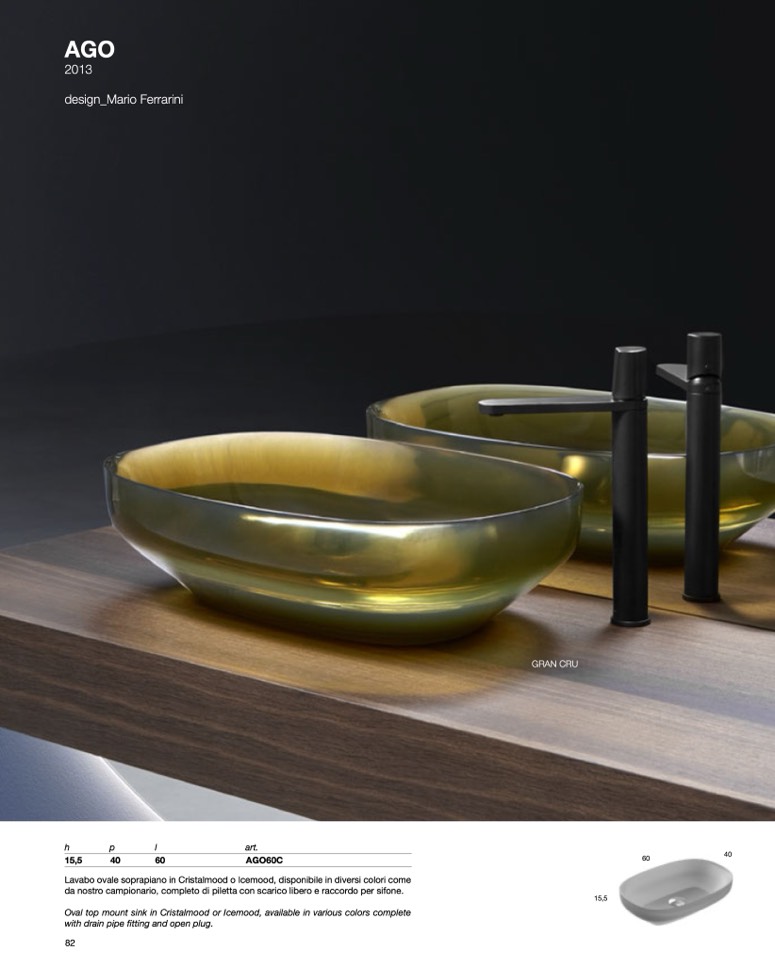 Oval top mount sink in Cristalmood or Icemood, available in various colors complete