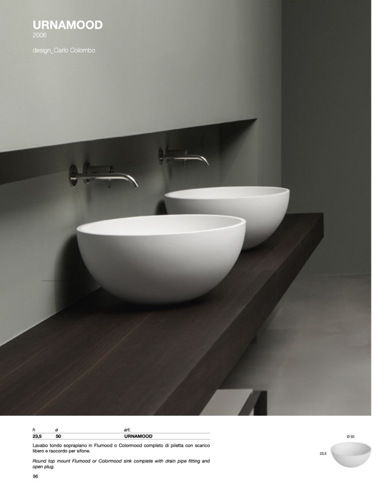 Lavabo tondo soprapiano in Flumood o Colormood completo di piletta con scarico