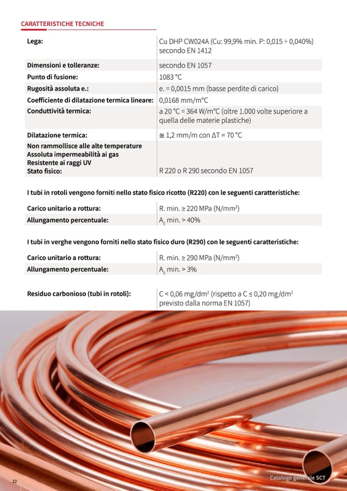 I tubi in rotoli vengono forniti nello stato fisico ricotto (R220) con le seguenti caratteristiche: