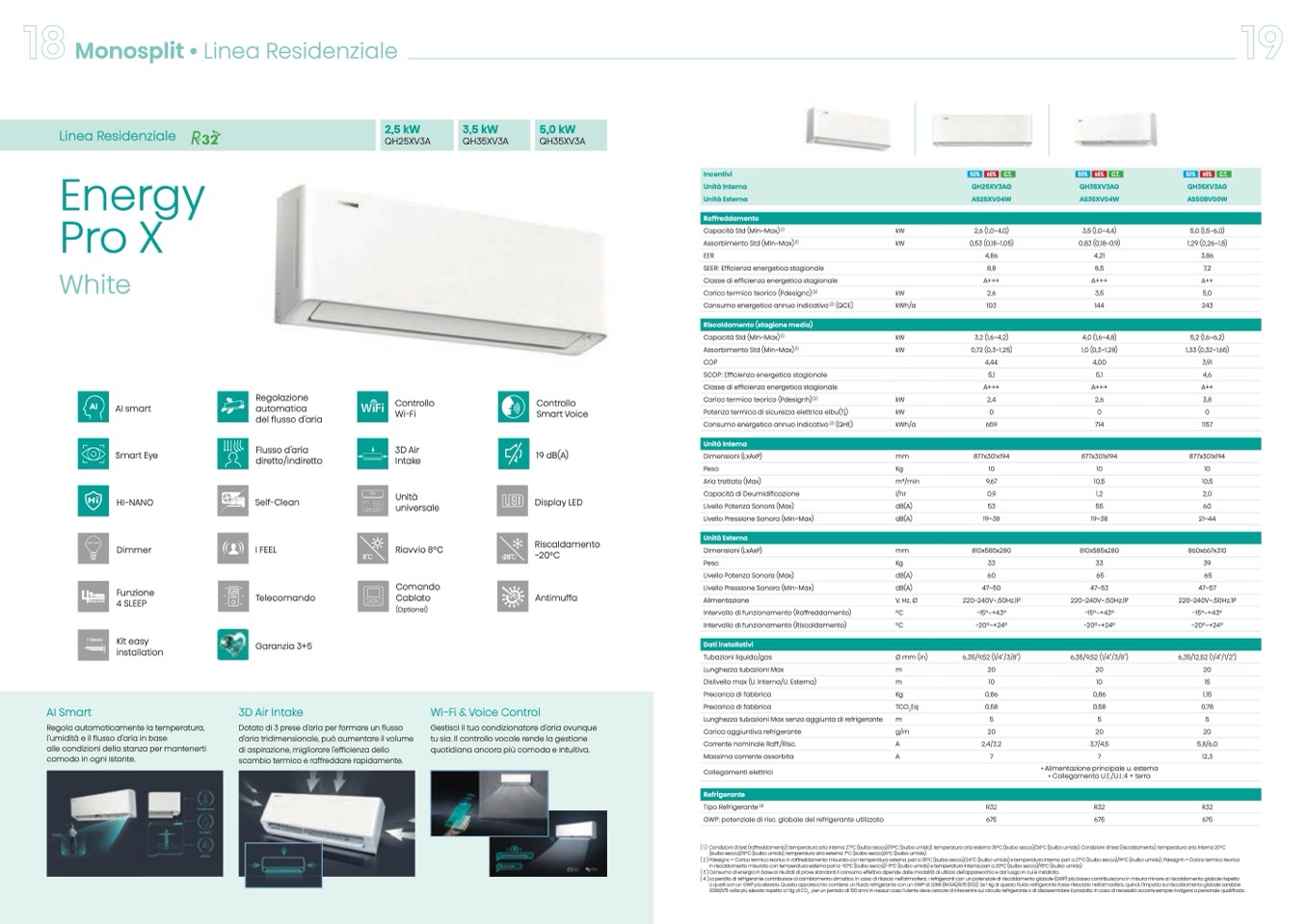 (1) Condizioniditest(raffreddamento):temperaturaariainterna27°C(bulbosecco)/19°C(bulboumido);temperaturaariaesterna35°C(bulbosecco)/24°C(bulboumido).Condizioniditest(riscaldamento):temperaturaariainterna20°C