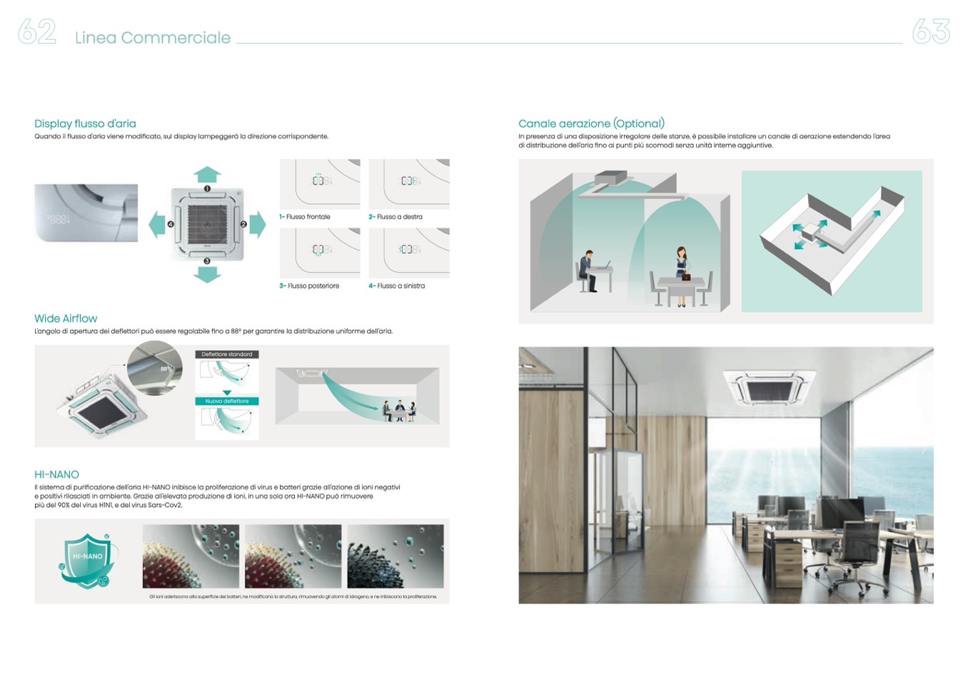 L’angolo di apertura dei deflettori può essere regolabile fino a 88° per garantire la distribuzione uniforme dell’aria.