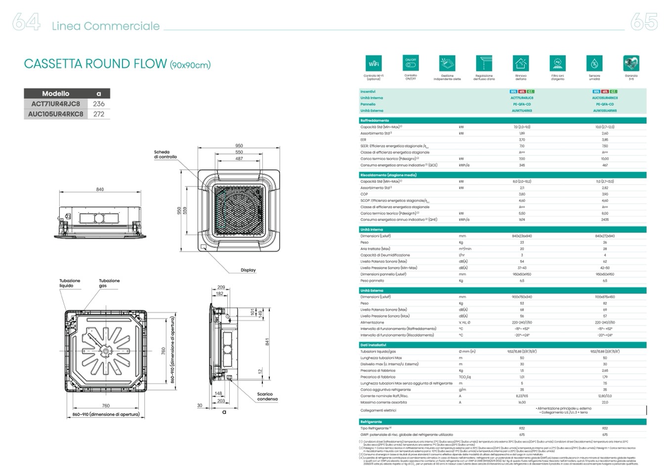 (1) Condizioniditest(raffreddamento):temperaturaariainterna27°C(bulbosecco)/19°C(bulboumido);temperaturaariaesterna35°C(bulbosecco)/24°C(bulboumido).Condizioniditest(riscaldamento):temperaturaariainterna20°C