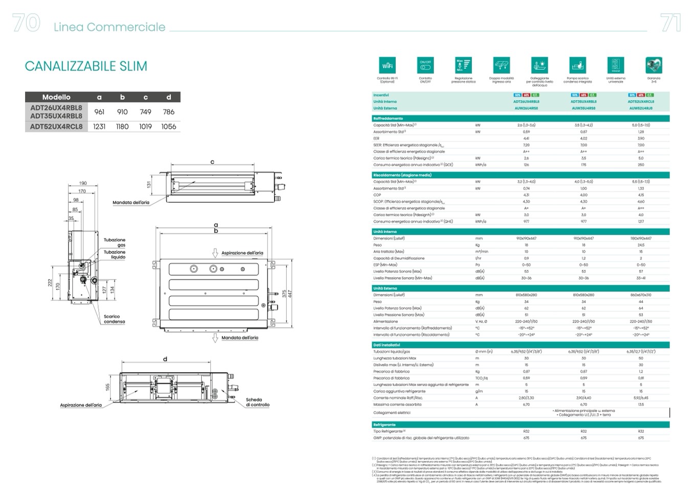 (1) Condizioniditest(raffreddamento):temperaturaariainterna27°C(bulbosecco)/19°C(bulboumido);temperaturaariaesterna35°C(bulbosecco)/24°C(bulboumido).Condizioniditest(riscaldamento):temperaturaariainterna20°C