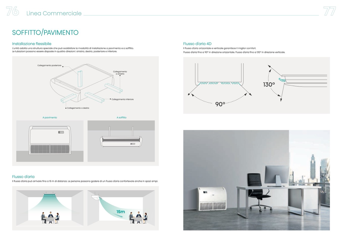 L'unità adotta una struttura speciale che può soddisfare la modalità di installazione a pavimento e a soffitto.