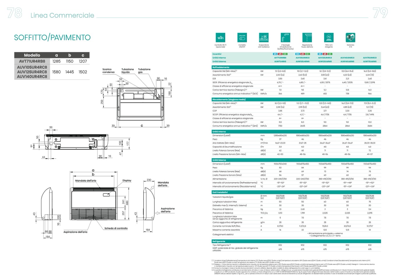 (1) Condizioniditest(raffreddamento):temperaturaariainterna27°C(bulbosecco)/19°C(bulboumido);temperaturaariaesterna35°C(bulbosecco)/24°C(bulboumido).Condizioniditest(riscaldamento):temperaturaariainterna20°C