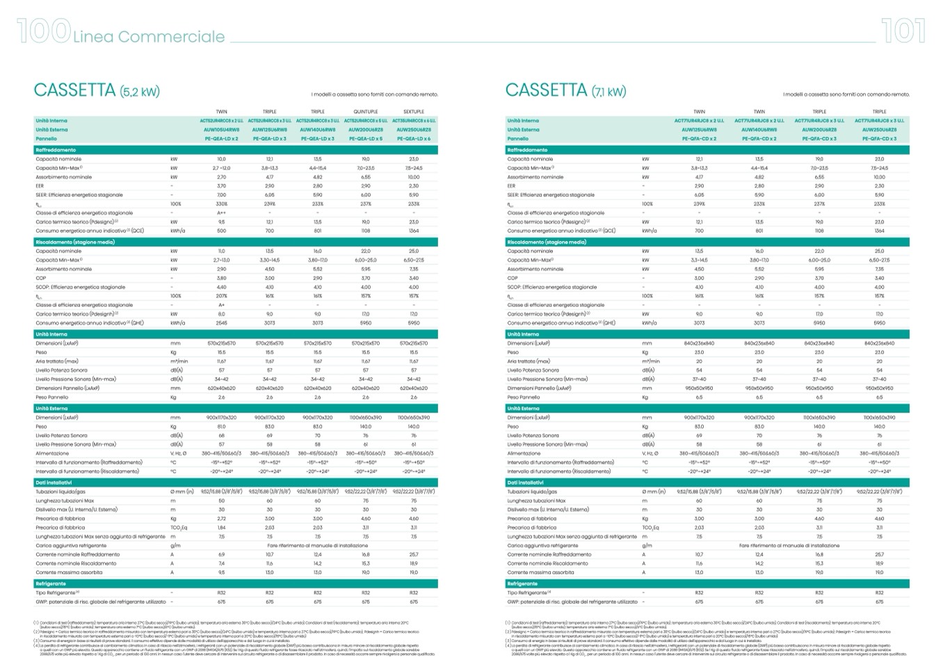 (1) Condizioniditest(raffreddamento):temperaturaariainterna27°C(bulbosecco)/19°C(bulboumido);temperaturaariaesterna35°C(bulbosecco)/24°C(bulboumido).Condizioniditest(riscaldamento):temperaturaariainterna20°C