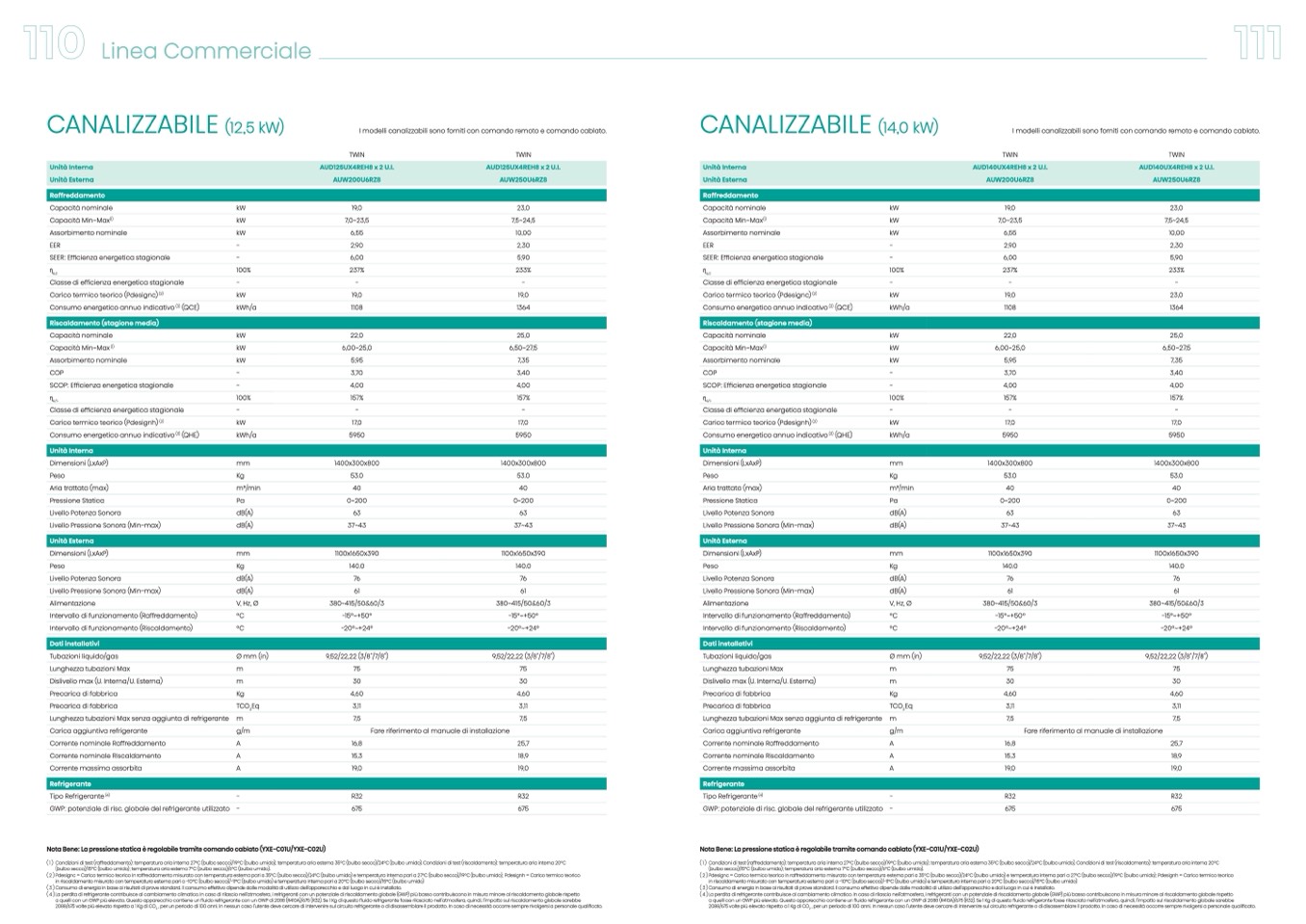 (1) Condizioniditest(raffreddamento):temperaturaariainterna27°C(bulbosecco)/19°C(bulboumido);temperaturaariaesterna35°C(bulbosecco)/24°C(bulboumido).Condizioniditest(riscaldamento):temperaturaariainterna20°C