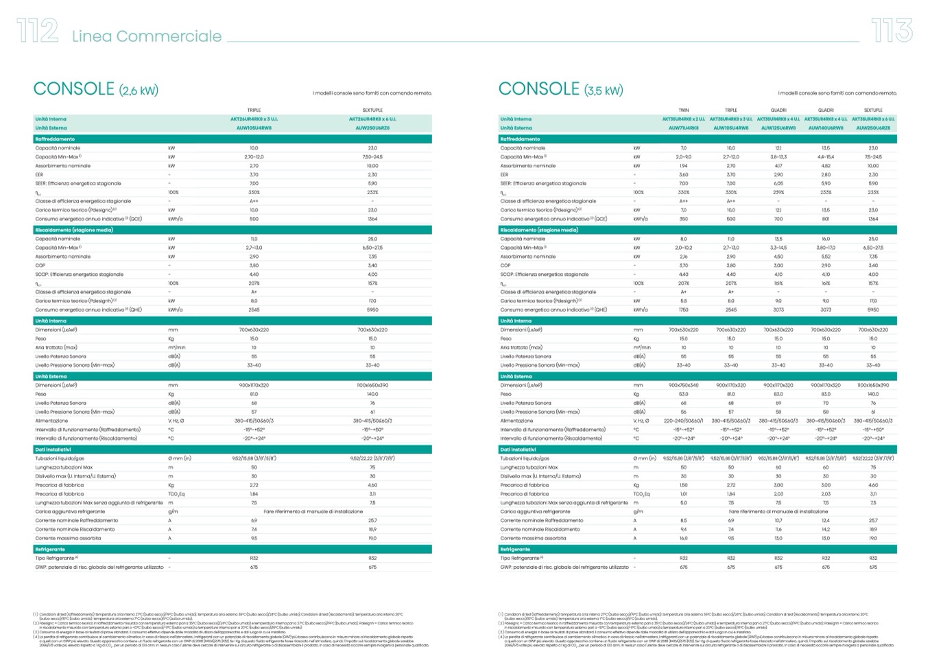 Pdesignc = Carico termico teorico in raffreddamento misurato con temperatura esterna pari a 35°C (bulbo secco)/24°C (bulbo umido) e temperatura interna pari a 27°C (bulbo secco)/19°C (bulbo umido); Pdesignh = Carico termico teorico