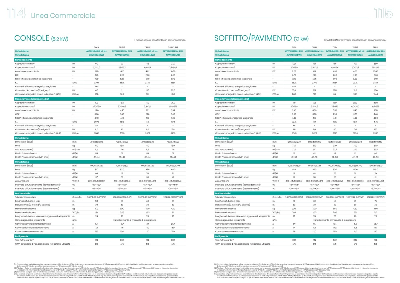 (1) Condizioniditest(raffreddamento):temperaturaariainterna27°C(bulbosecco)/19°C(bulboumido);temperaturaariaesterna35°C(bulbosecco)/24°C(bulboumido).Condizioniditest(riscaldamento):temperaturaariainterna20°C