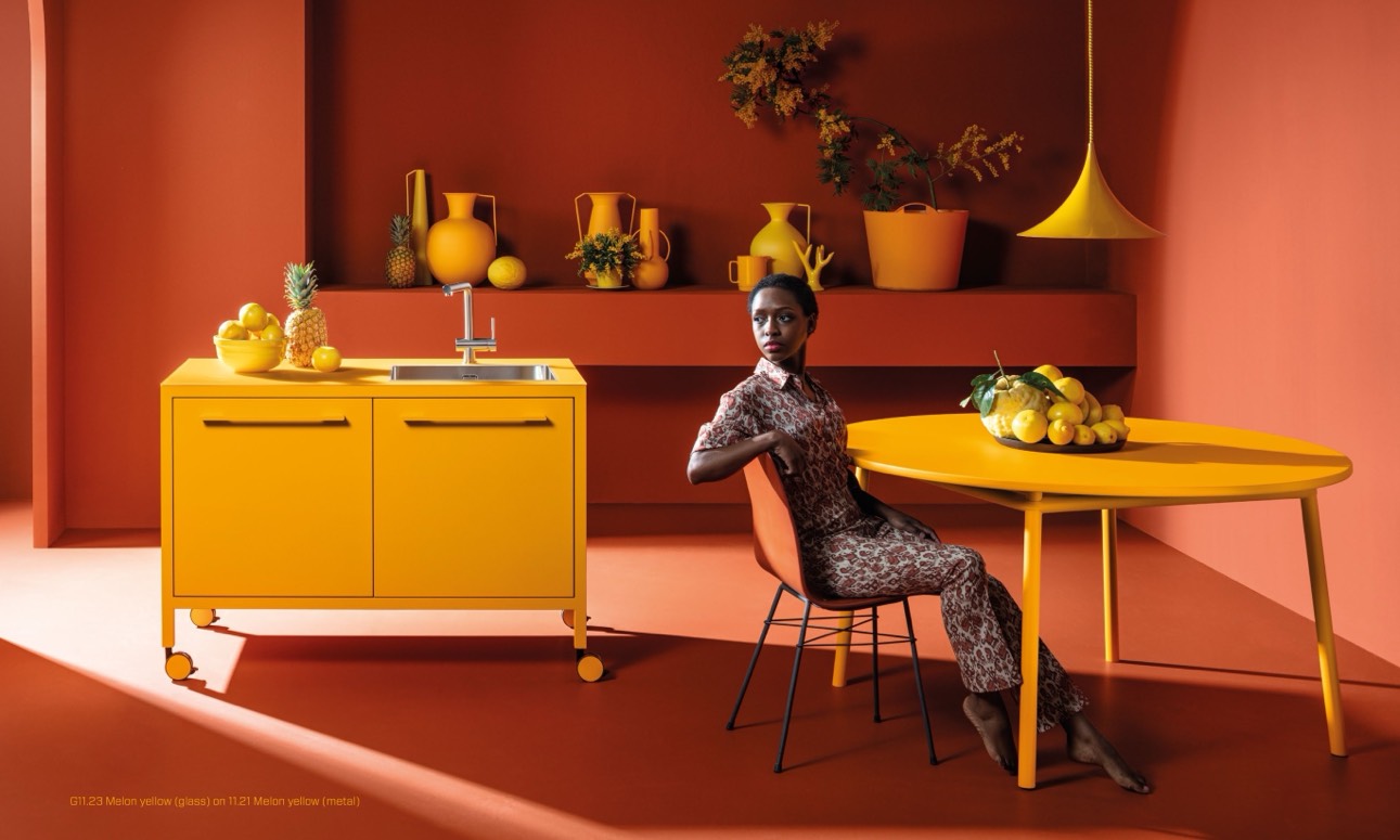 G11.23 Melon yellow (glass) on 11.21 Melon yellow (metal)