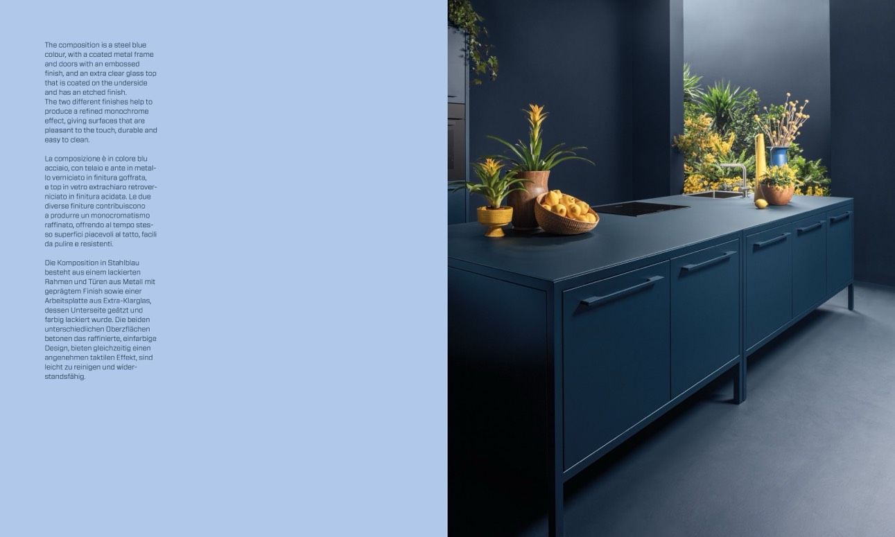 La composizione è in colore blu
