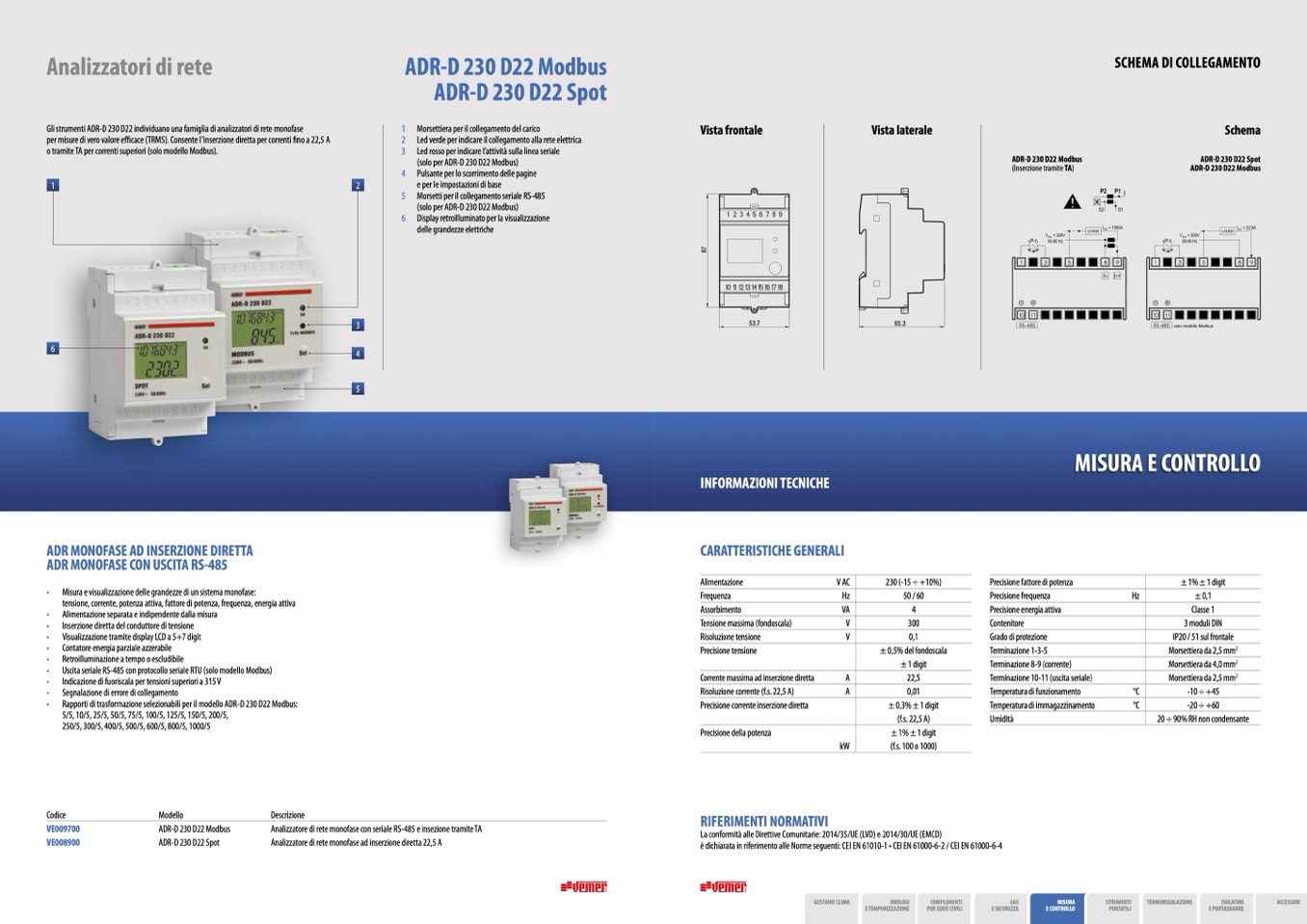 Gli strumenti ADR-D 230 D22 individuano una famiglia di analizzatori di rete monofase