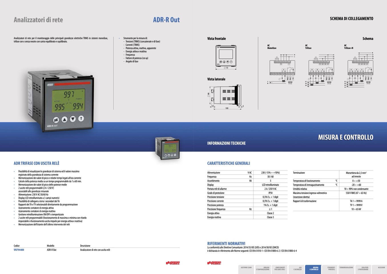 Analizzatori di rete per il monitoraggio delle principali grandezze elettriche TRMS in sistemi monofase,
