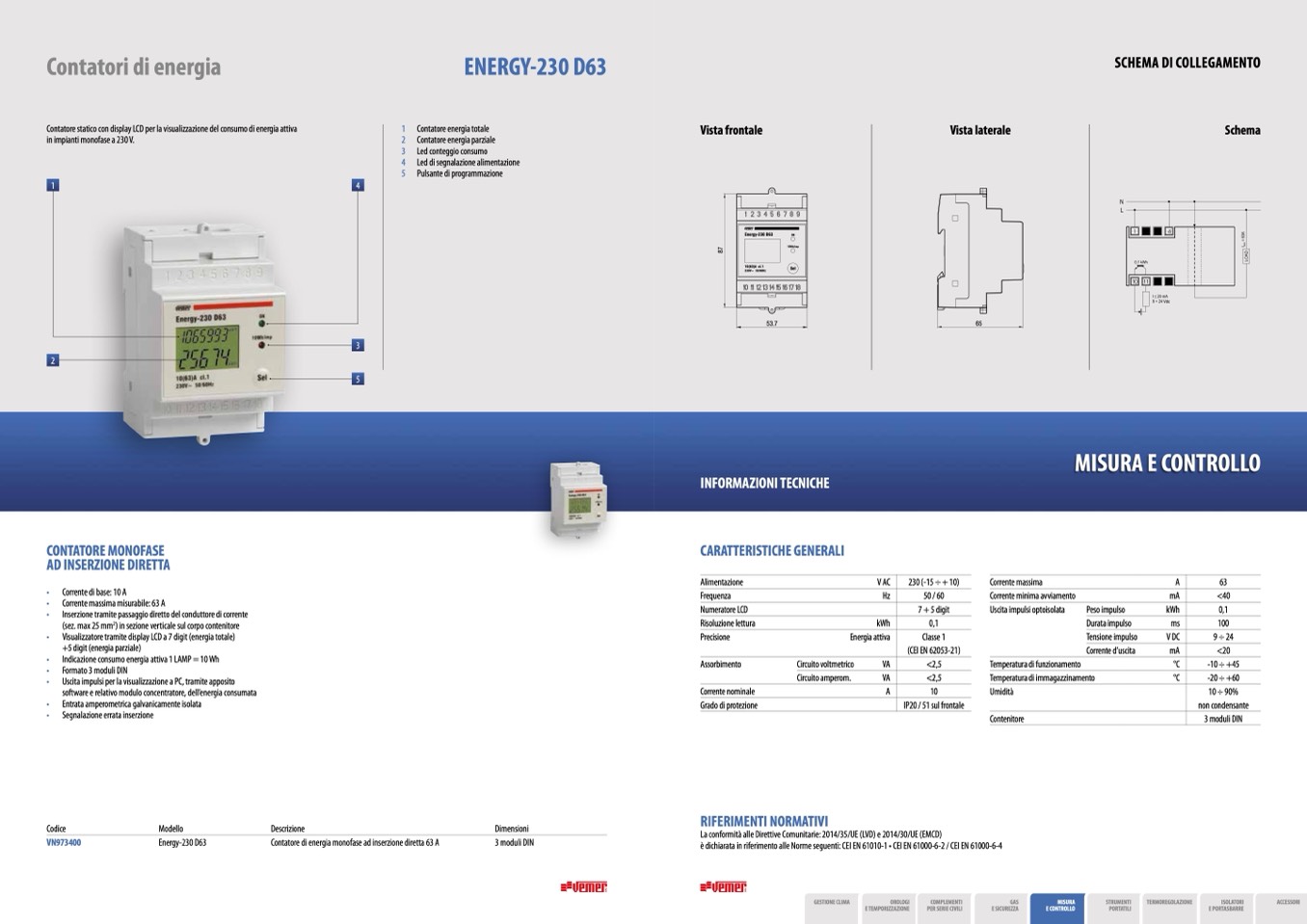• Corrente massima misurabile: 63 A