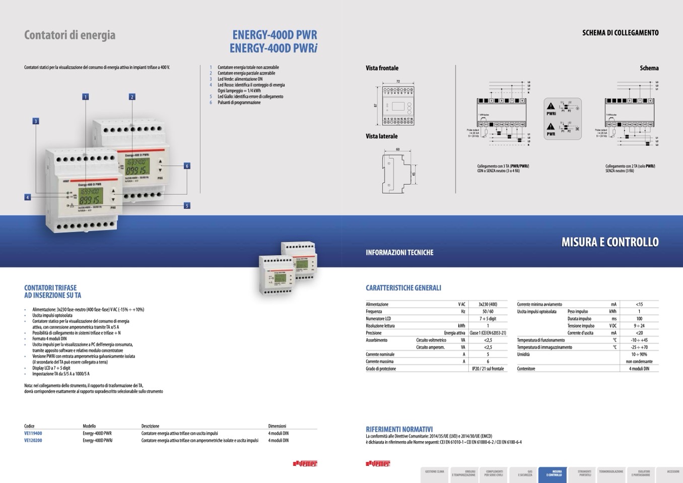 • Alimentazione: 3x230 fase-neutro (400 fase-fase) V AC (-15% ÷ +10%)