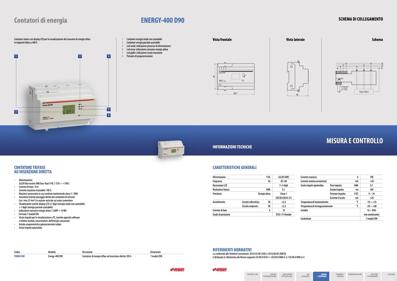Contatore di energia trifase ad inserzione diretta 100 A