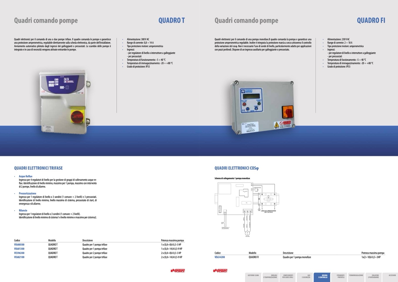 Quadri elettronici per il comando di una pompa monofase.Il quadro comanda la pompa e garantisce una