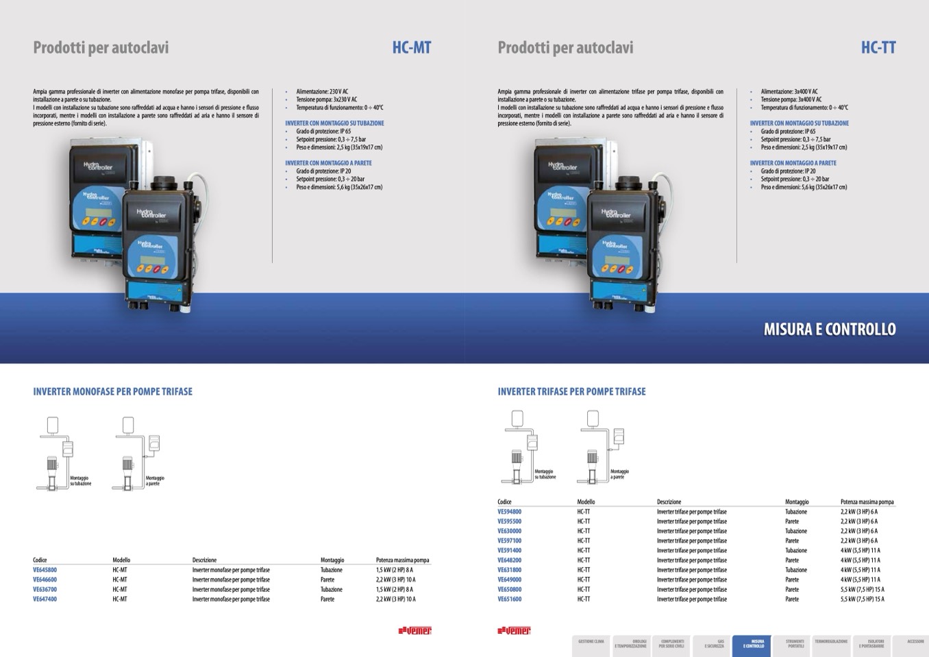 Ampia gamma professionale di inverter con alimentazione trifase per pompa trifase, disponibili con