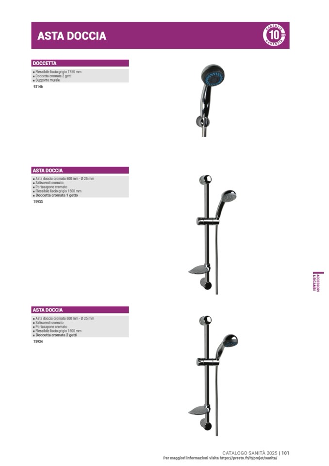 n Asta doccia cromata 600 mm - Ø 25 mm