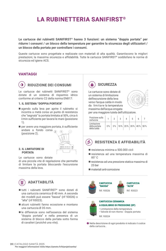 Le cartucce dei rubinetti SANIFIRST® hanno 3 funzioni: un sistema “doppia portata” pe