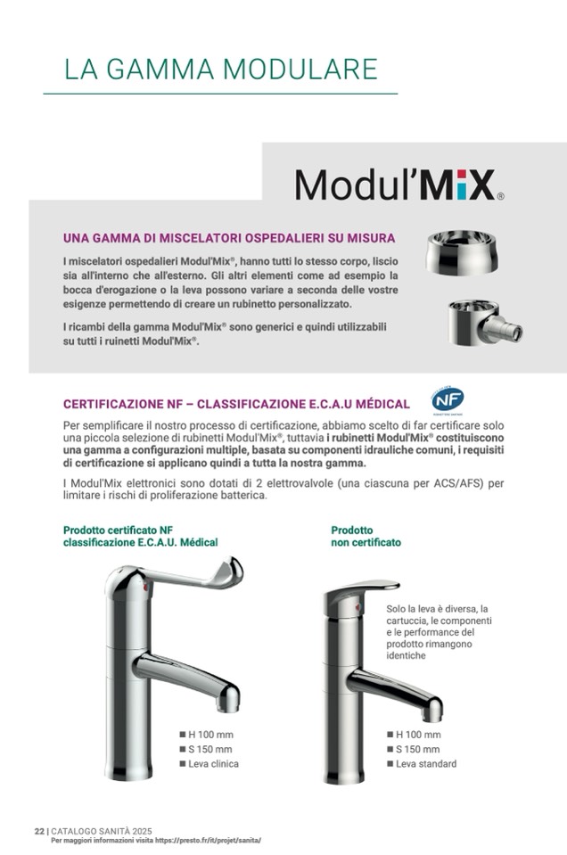 I miscelatori ospedalieri Modul'Mix®, hanno tutti lo stesso corpo, liscio