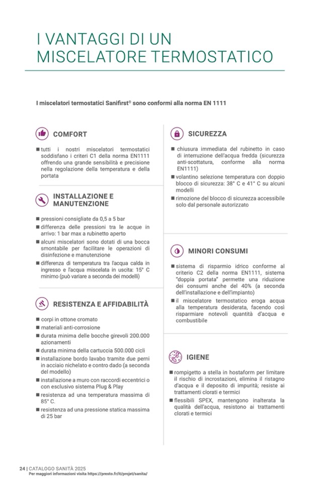 I miscelatori termostatici Sanifirst® sono conformi alla norma EN 1111