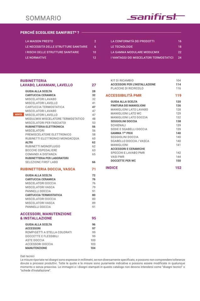 momento e senza preavviso. Le immagini e i disegni stampati in questo catalogo non devono intendersi come “disegni tecnici”