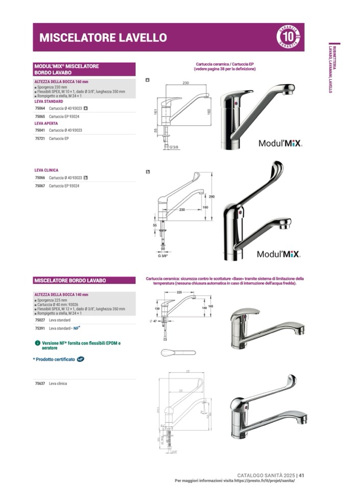 Cartuccia ceramica: sicurezza contro le scottature «Base» tramite sistema di limitazione della