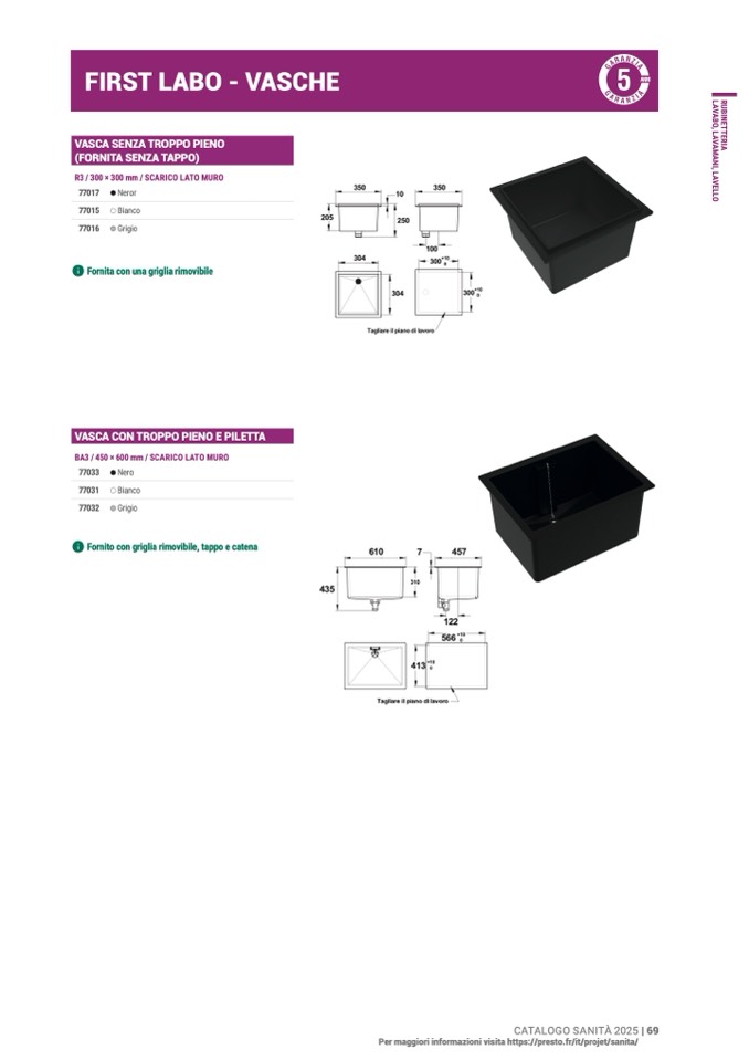 BA3 / 450 × 600 mm / SCARICO LATO MUR