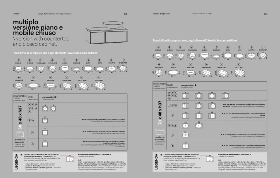 N.B. 16 - 17 - 18: composizioni possibili solo con rubinetto a