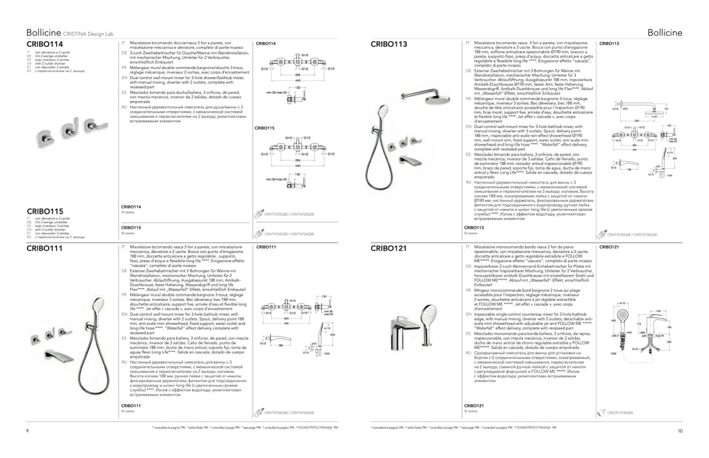 manual mixing, diverter with 3 outlets. Spout, delivery point