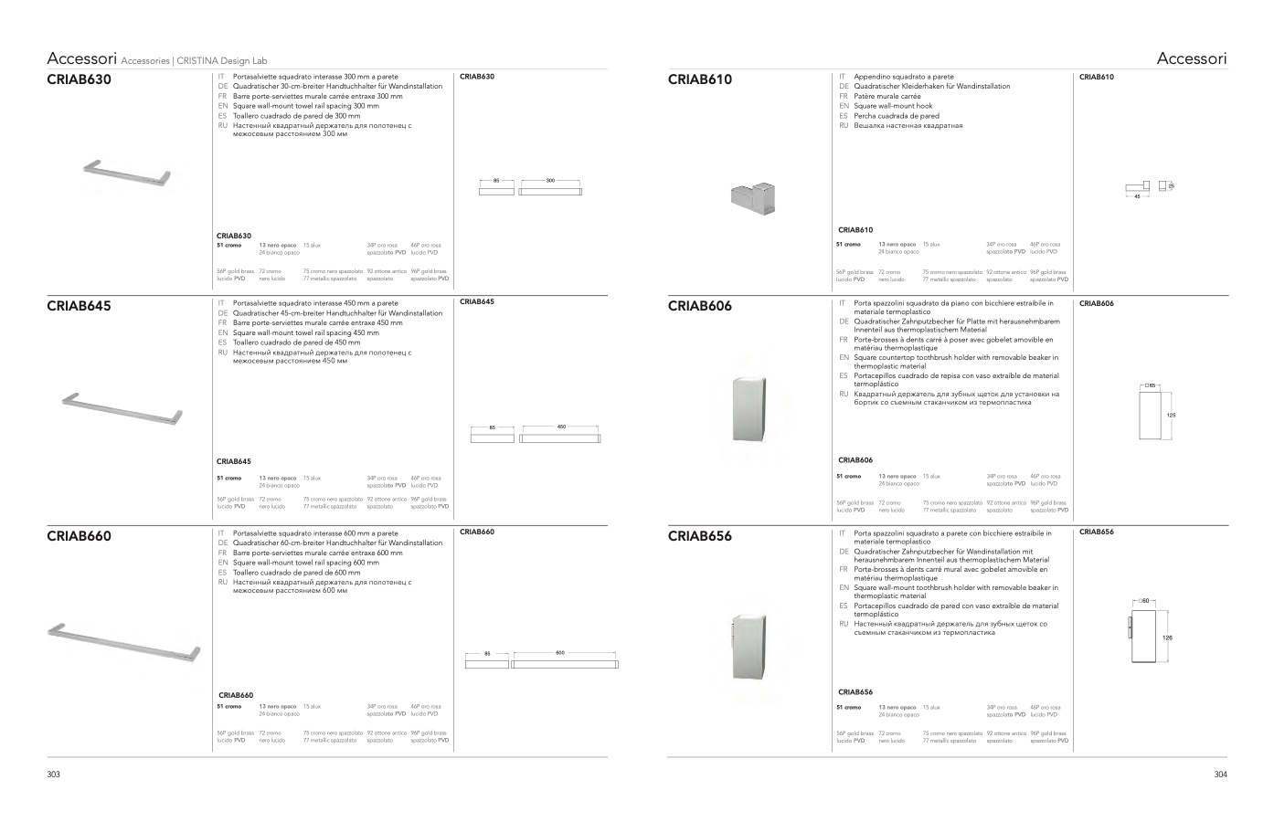 IT Portasalviette squadrato interasse 600 mm a parete