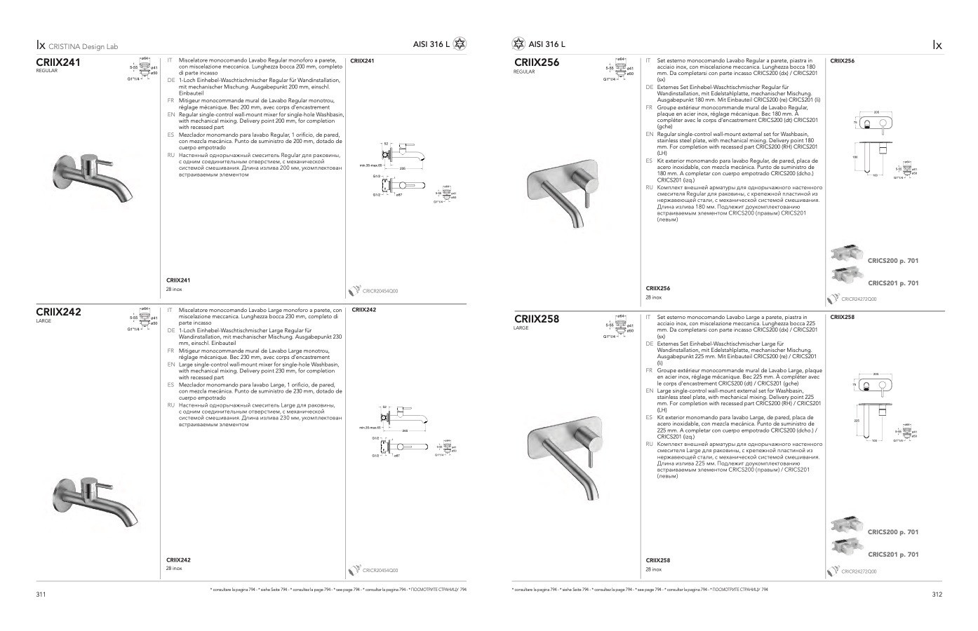mm. Da completarsi con parte incasso CRICS200 (dx) / CRICS201