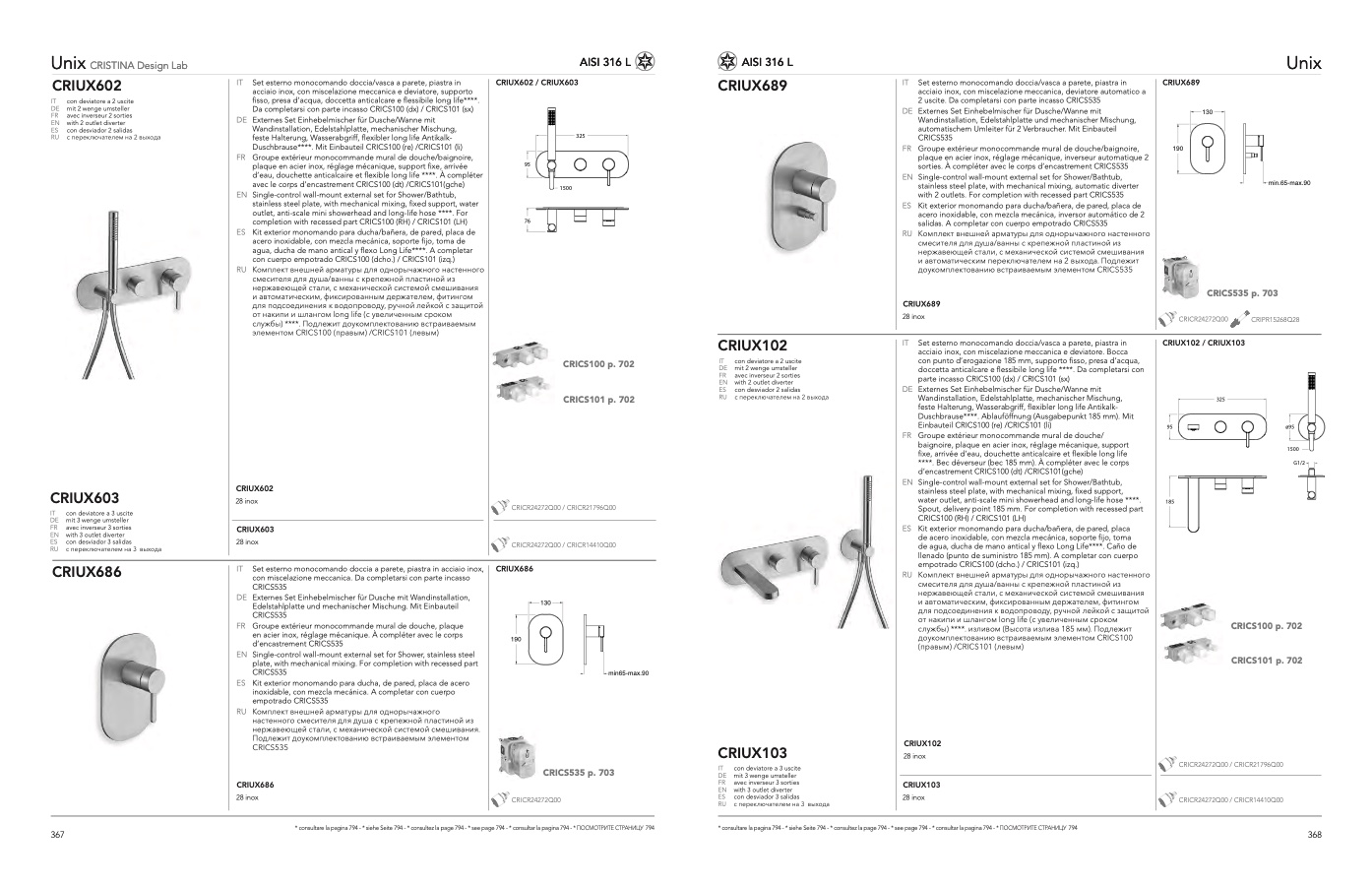 avec le corps d’encastrement CRICS100 (dt) /CRICS101(gche)