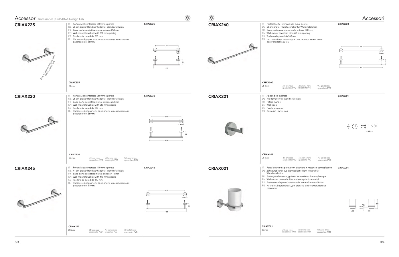 IT Portasalviette interasse 250 mm a parete