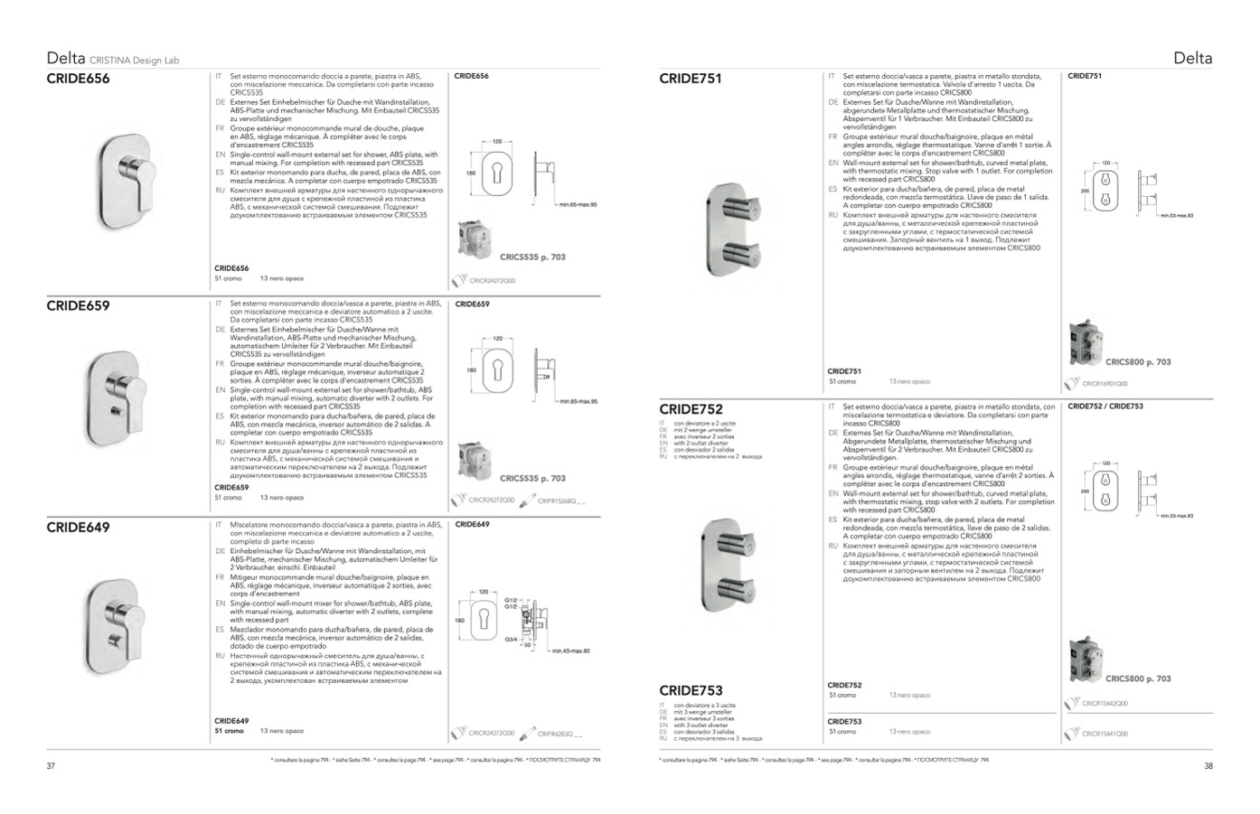 with thermostatic mixing, stop valve with 2 outlets. For completion