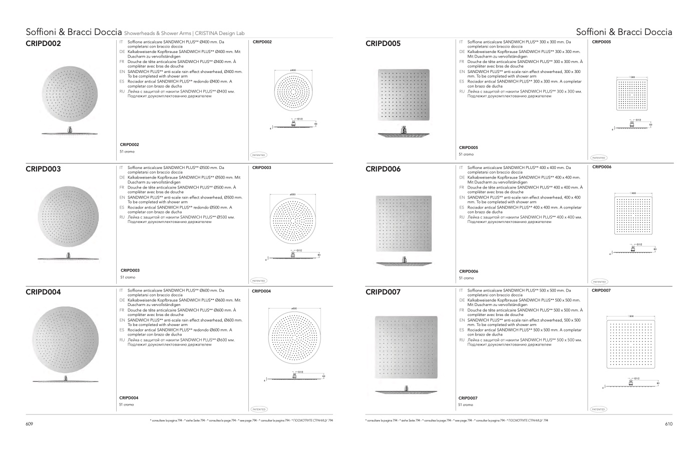 IT Soffione anticalcare SANDWICH PLUS** 400 x 400 mm. Da