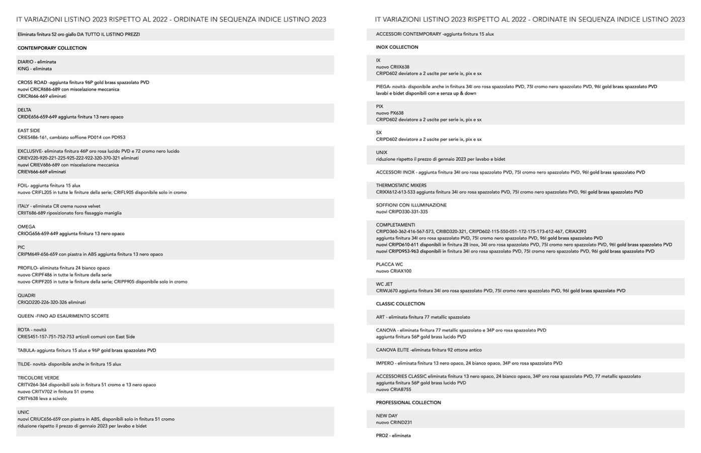 Eliminata finitura 52 oro giallo DA TUTTO IL LISTINO PREZZI