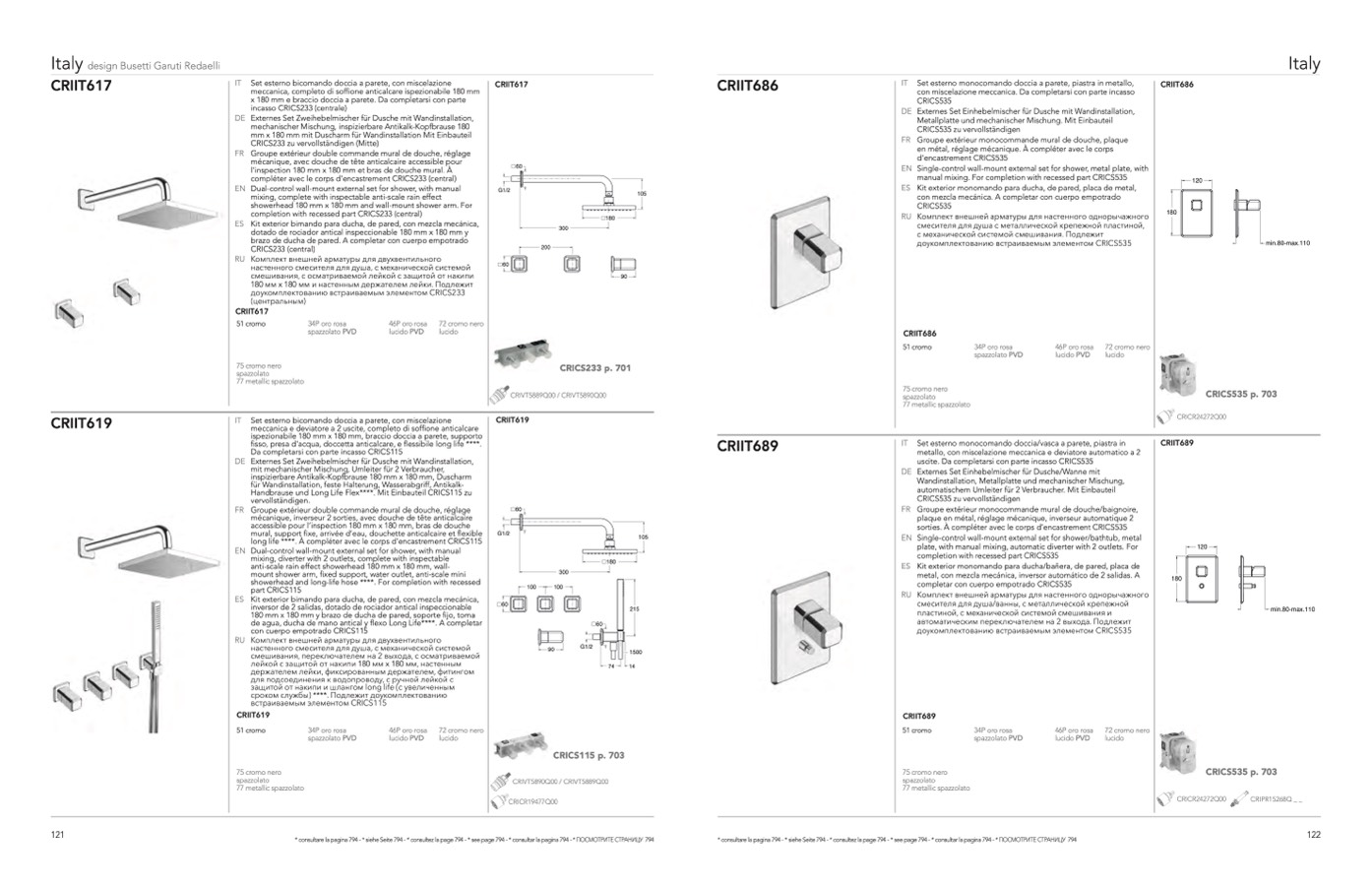 x 180 mm e braccio doccia a parete. Da completarsi con parte