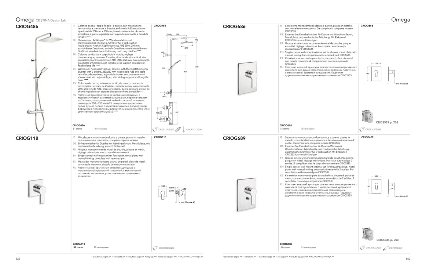 IT Colonna doccia “corpo freddo” a parete, con miscelazione