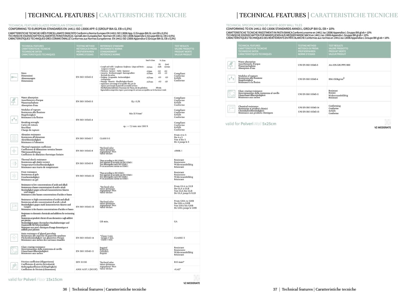 CONFORMING TO EUROPEAN STANDARDS EN 14411 ISO 13006 APP. G (GROUP BIA GL EB ≤ 0,5%)