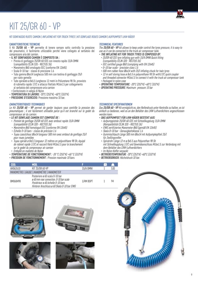 KIT GONFIAGGIO RUOTE CAMION | INFLATING KIT FOR TRUCK TYRES | KIT GONFLAGE ROUES CAMION | AUFPUMPSET LKW-RÄDER