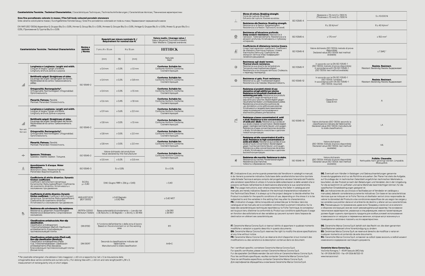Per i certificati specifici, contattare Ceramiche Marca Corona S.p.A.