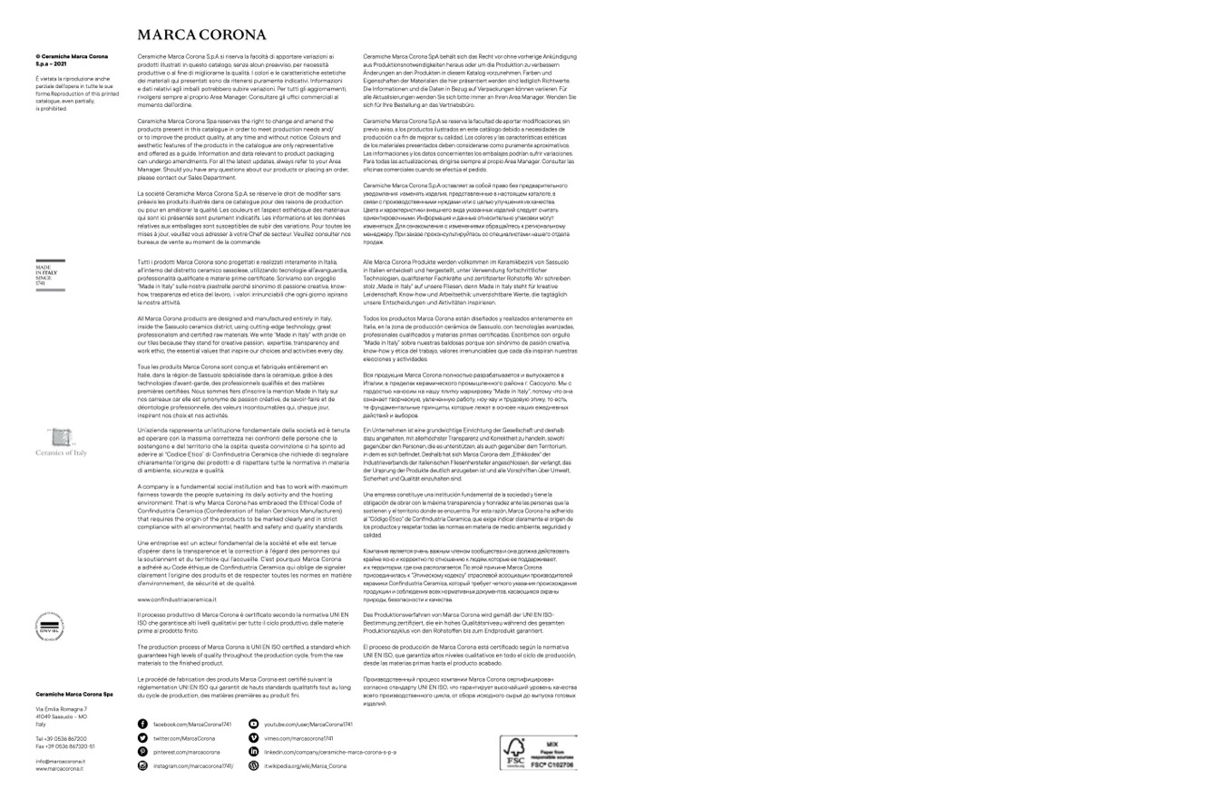 Ceramiche Marca Corona Spa reserves the right to change and amend the