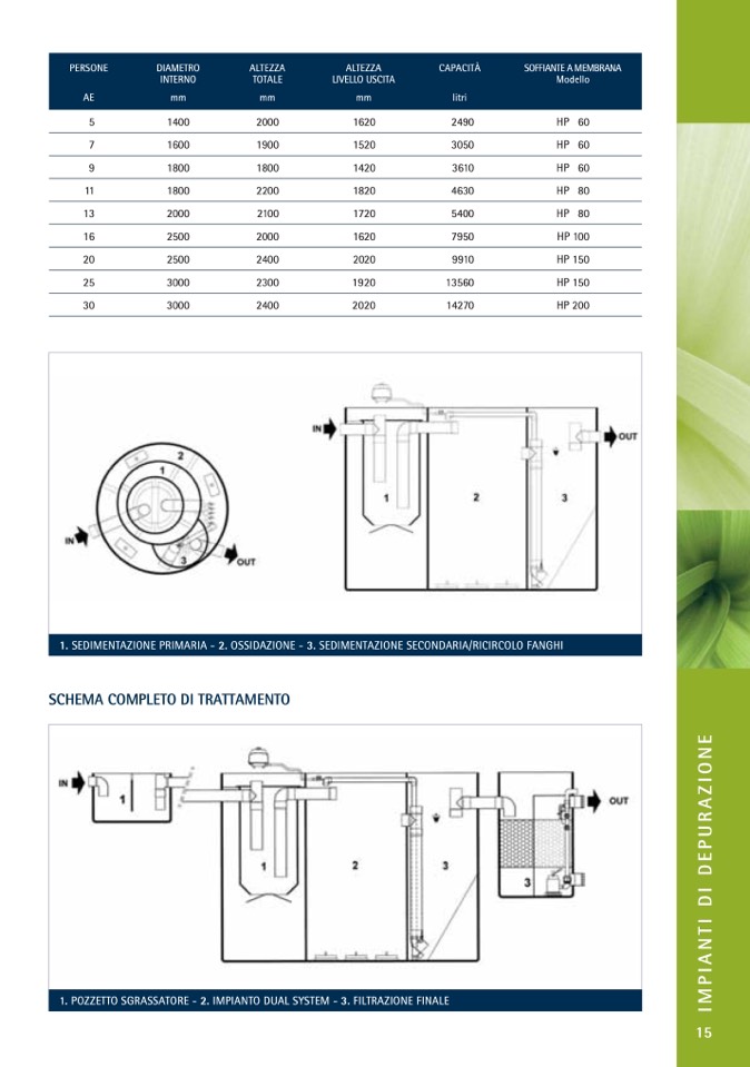 1. POZZETTO SGRASSATORE - 2. IMPIANTO DUAL SYSTEM - 3. FILTRAZIONE FINALE