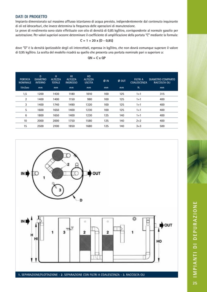 Impianto dimensionato sul massimo afflusso istantaneo di acqua previsto, indipendentemente dal contenuto inquinante