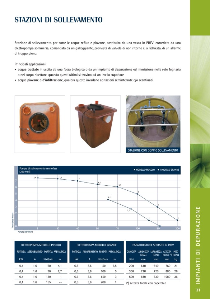 elettropompa sommersa, comandata da un galleggiante, provvista di valvola di non ritorno e, a richiesta, di un allarme