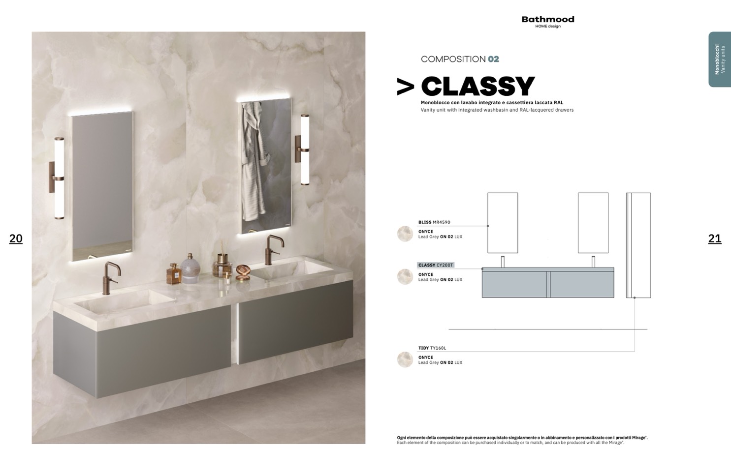 Ogni elemento della composizione può essere acquistato singolarmente o in abbinamento e personalizzato con i prodotti Mirage